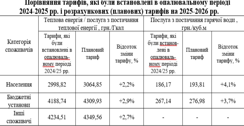 Відповідно до даного рішення, тарифи на послуги теплопостачання, які будуть застосовуватись з 1 жовтня 2025 року по 30 вересня 2026 року становлять: